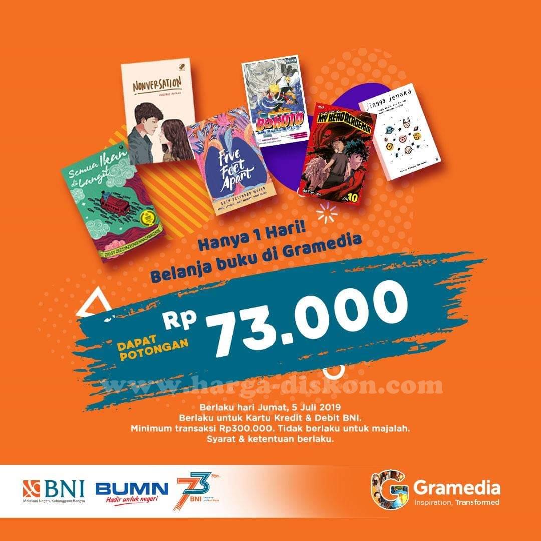 Promo Gramedia Diskon Rp73.000 dengan Kartu Debit/Kredit BNI Periode 5 Juli 2019 | Harga Diskon