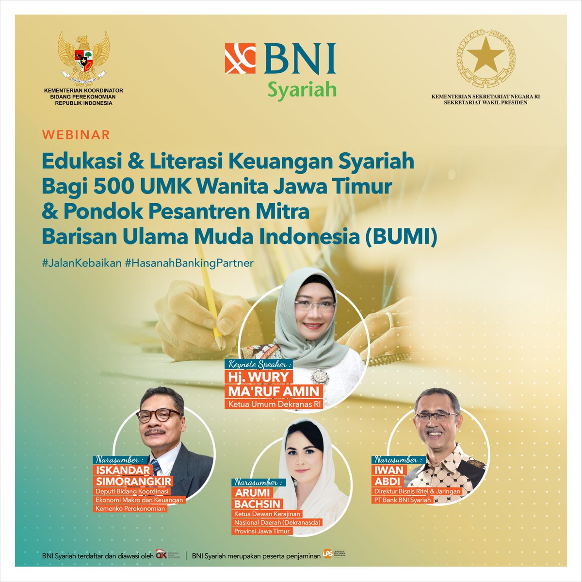 BNI Syariah Twitter: “Kegiatan ini merupakan kerjasama antara Kemenko Perekonomian bersama Sekretariat Wakil Presiden dan Bank BNI Syariah. Jangan lupa catat tanggal dan jamnya, ya, Sahabat! Selalu ada #JalanKebaikan bersama BNI