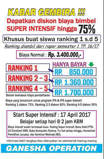 Informasi Biaya Bimbel Ganesha Operation 2019 Diskon Besar - www.xiuxiu.id