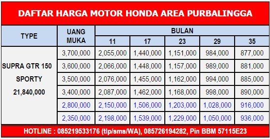 DAFTAR HARGA MOTOR HONDA PURBALINGGA | DAFTAR HARGA HONDA PURBALINGGA