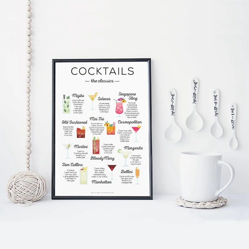 Koktail Klasik Resep Cetak Poster Bar Koktail Cara Panduan Gambar Seni Kanvas Lukisan Hadiah Dapur Dinding Seni Dekorasi|Painting & Calligraphy| - AliExpress