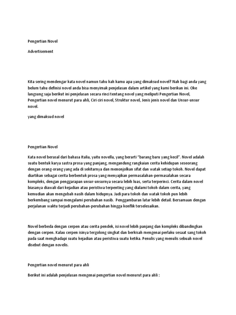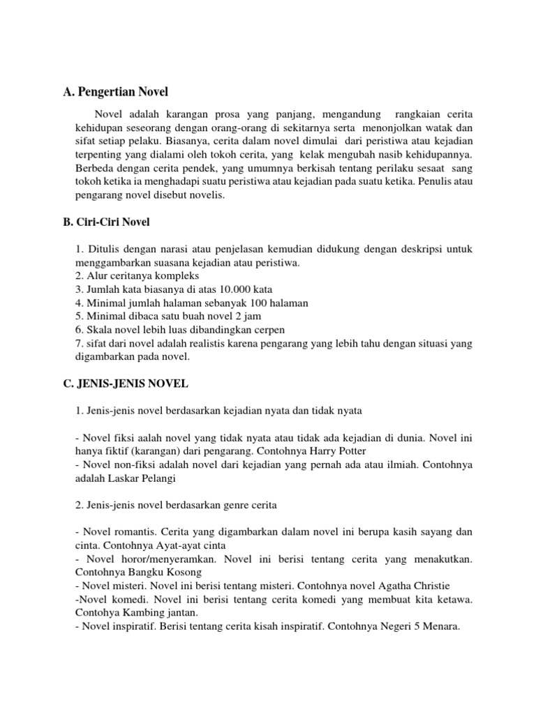 A. Pengertian Novel: B. Ciri-Ciri Novel
