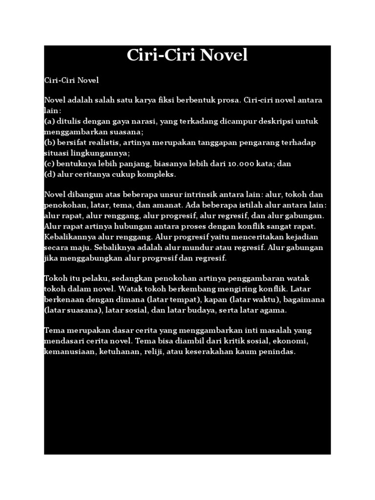 DOC) Ciri-Ciri Novel Indonesia | Mohammad Faizal - Academia.edu