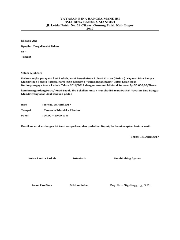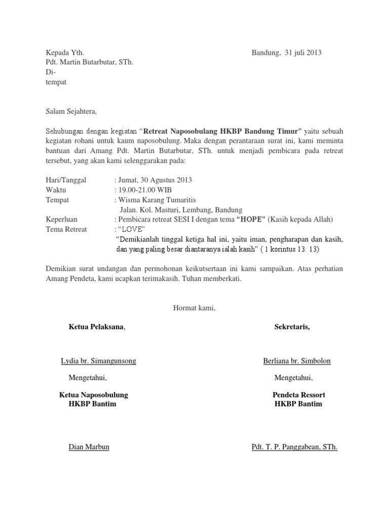 Contoh Surat Undangan Gereja - Sample Surat Undangan