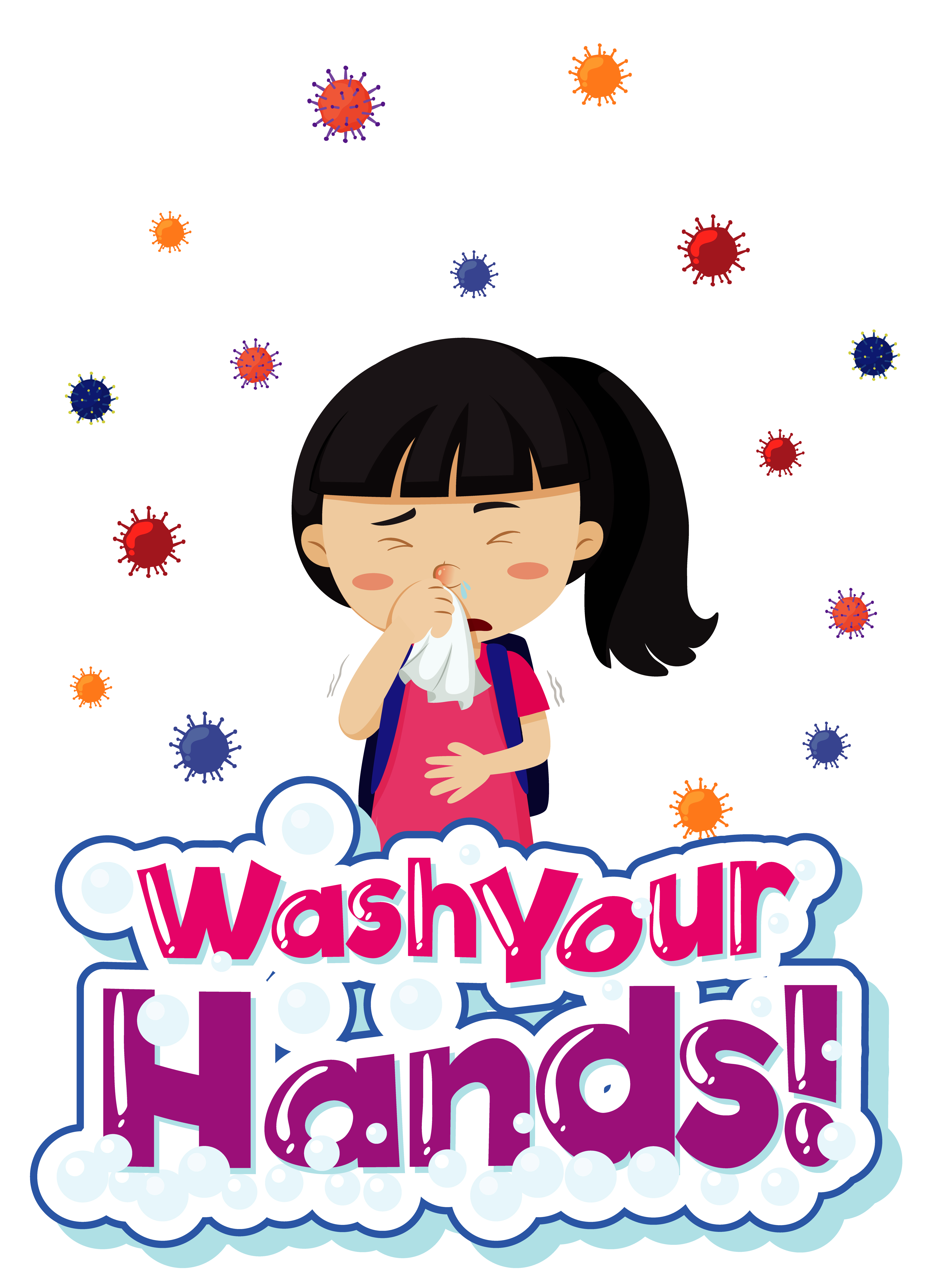 Sick girl Coronavirus poster with Wash Your Hands text - Download …