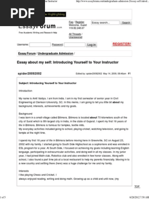 Essayforum: Essay About My Self: Introducing Yourself To Your Instructor | Learning | Communication