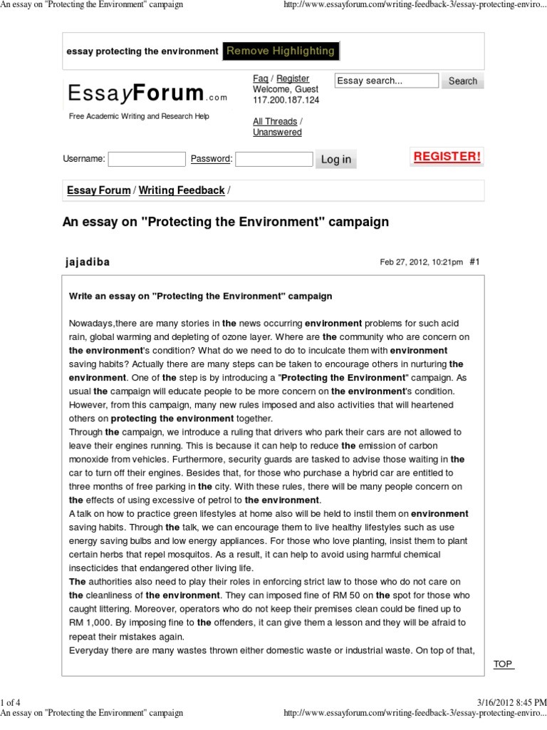 An Essay on Protecting the Environment Campaign | Natural Environment | Recycling
