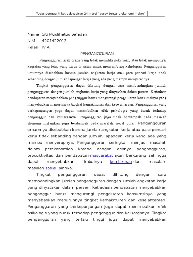 Essai Ekonomi Makro (Pengganti Ketidakhadiran)