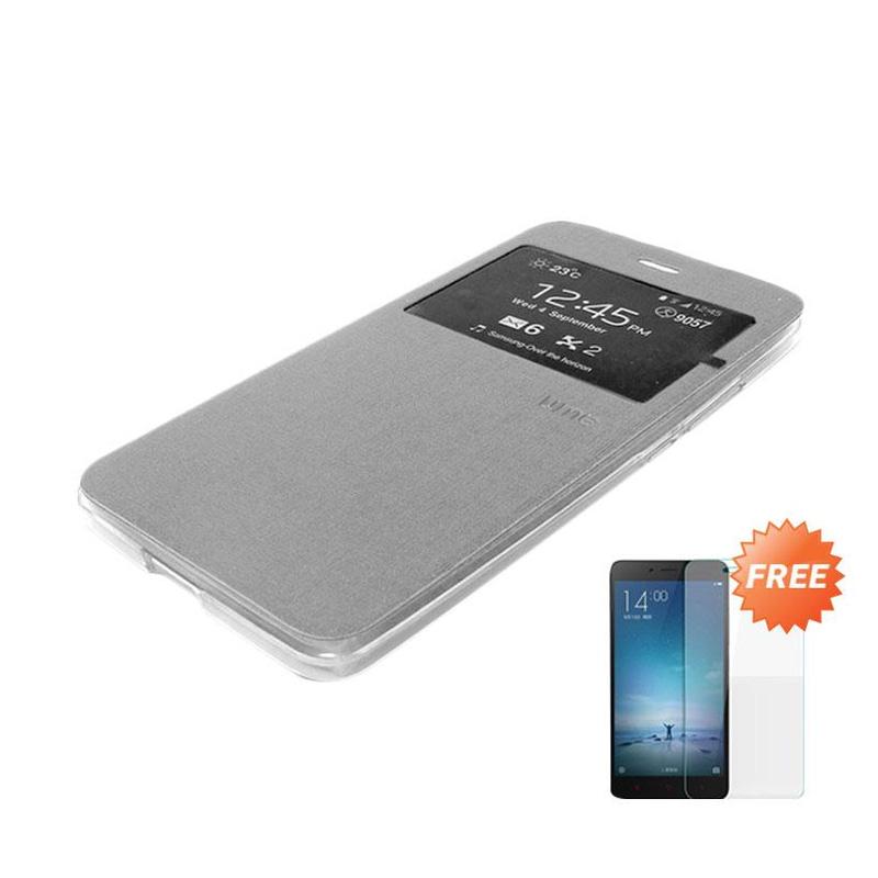 Jual Ume Leather Flip Cover Casing for Samsung Galaxy Note 4 or N9100 - Silver Free Tempered Glass Screen Protector Online Oktober 2020 | Blibli.com