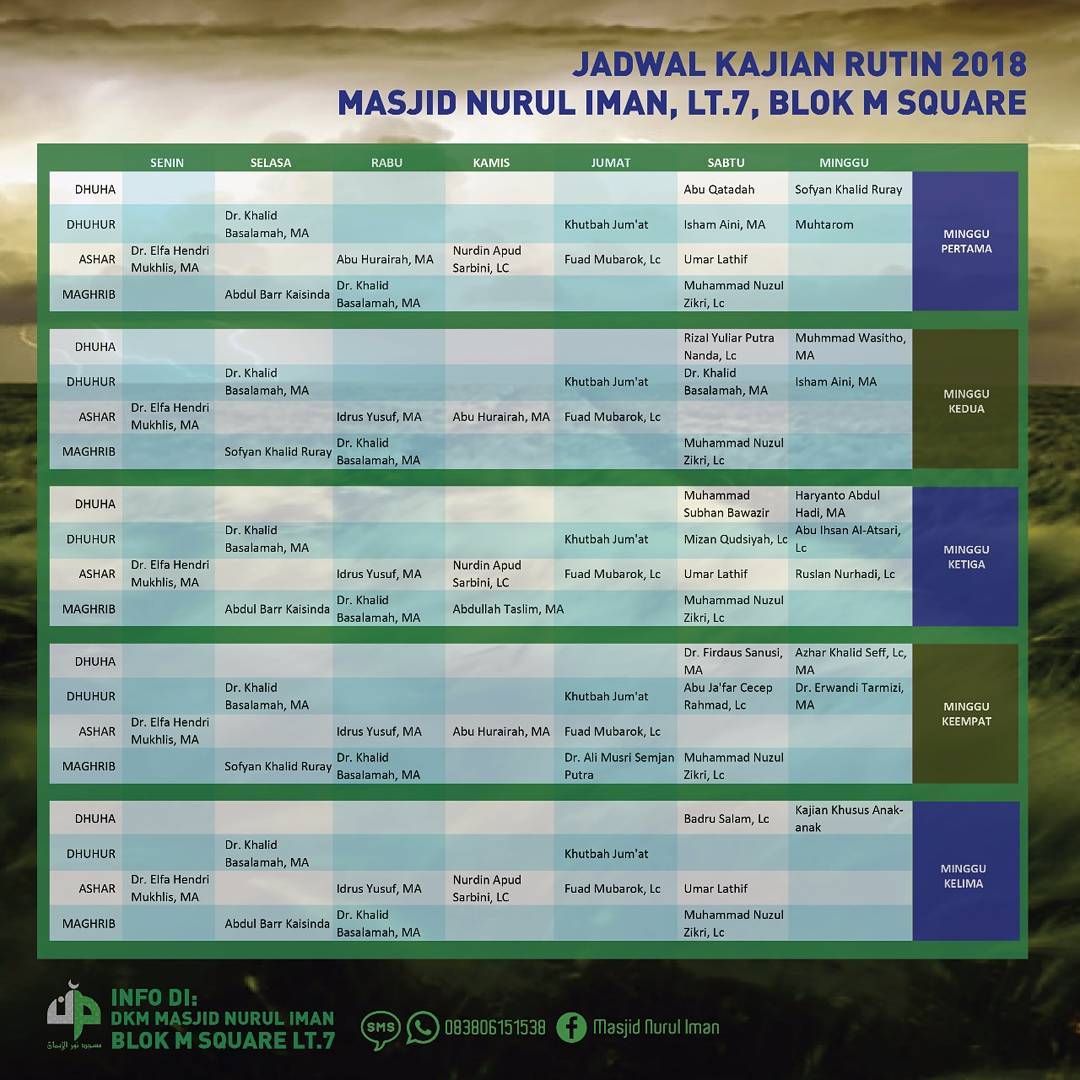 Jadwal kajian rutin Masjid Nurul Iman Blok M Square 2018 | Foto Dakwah