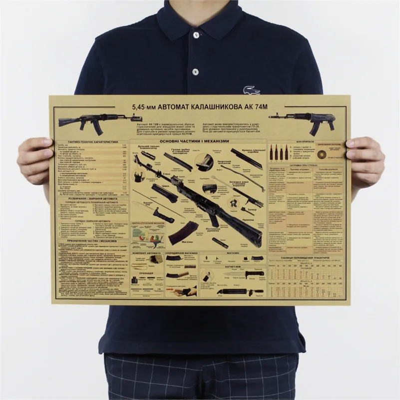 AK47 desain parameter menggambar poster untuk Cafe Kopi Kraft Kertas Poster vintage Stiker Dinding Antik 51x35 cm HD065-in Wall Stickers from Rumah & Taman on AliExpress