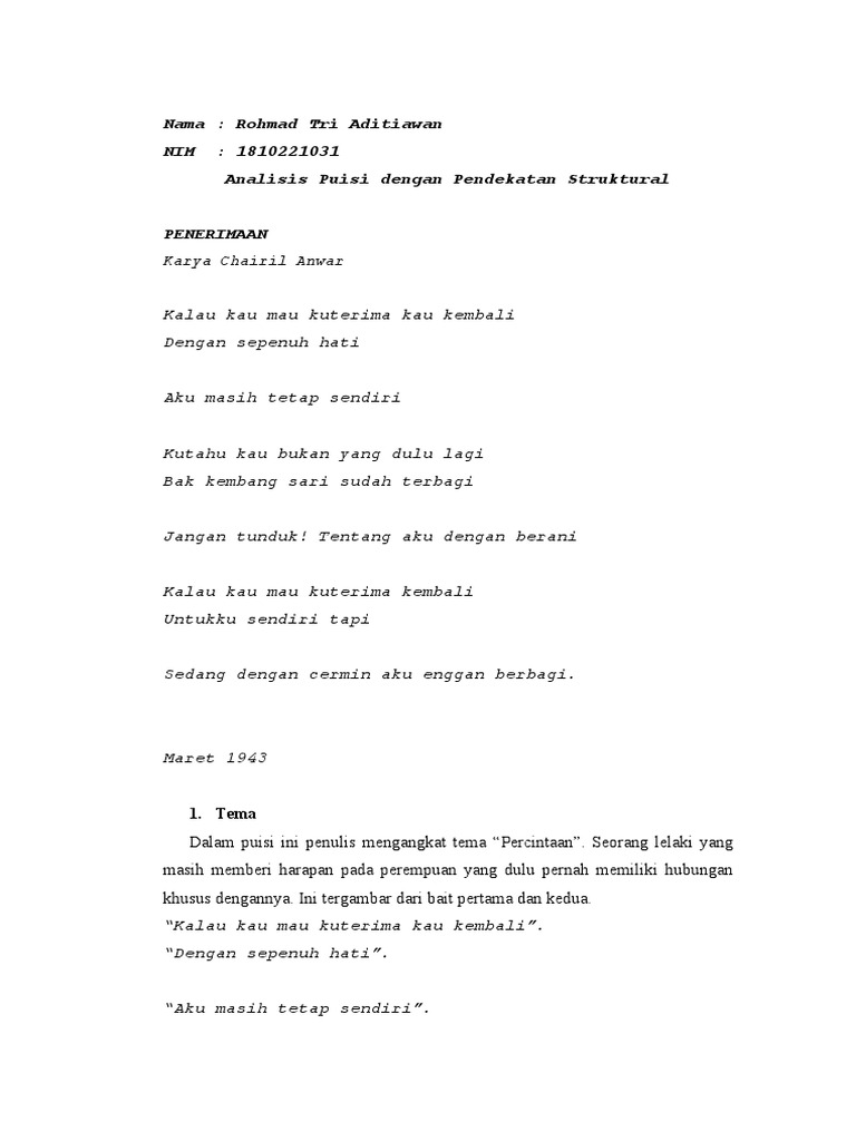 Analisis Struktural Puisi Penerimaan Karya Chairil Anwar