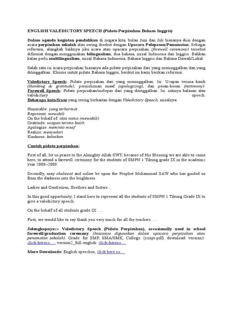 DOC) Teks pidato bahasa inggris perpisahan dan Artinya – School Valedictory | Achmad Dzikir - Academia.edu