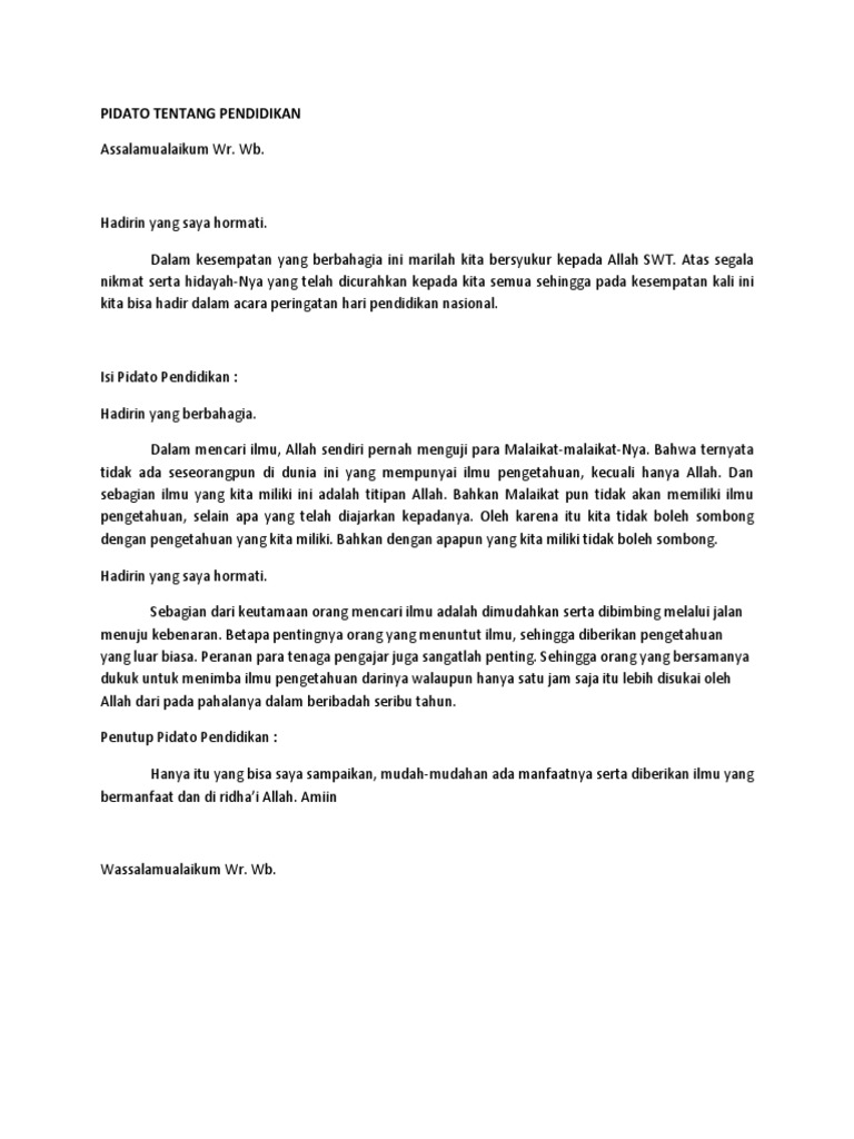 DOC) Contoh Pidato Singkat Pendidikan | indah mokobombang - Academia.edu