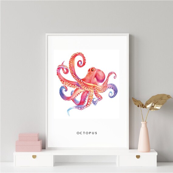 Watercolour Octopus A4 A3 Poster Print Wall Art | Etsy