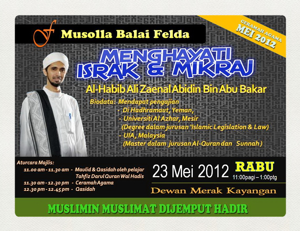 PENGUMUMAN - Ceramah Agama Bulan Mei 2012 ~ Musolla Balai Felda
