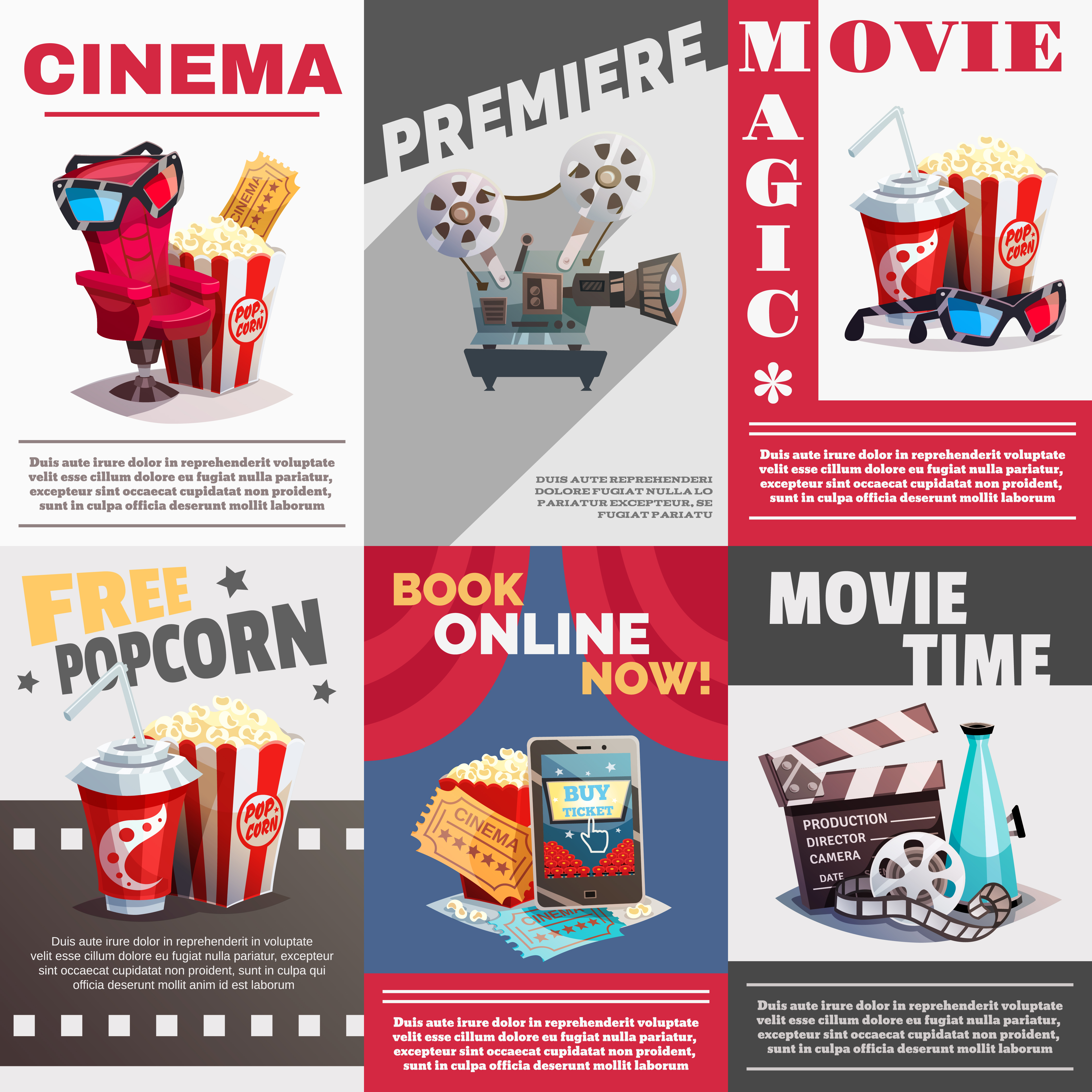 Set Of Cinema Posters With Premiere Advertising - Download Free Vectors, Clipart Graphics & Vector Art
