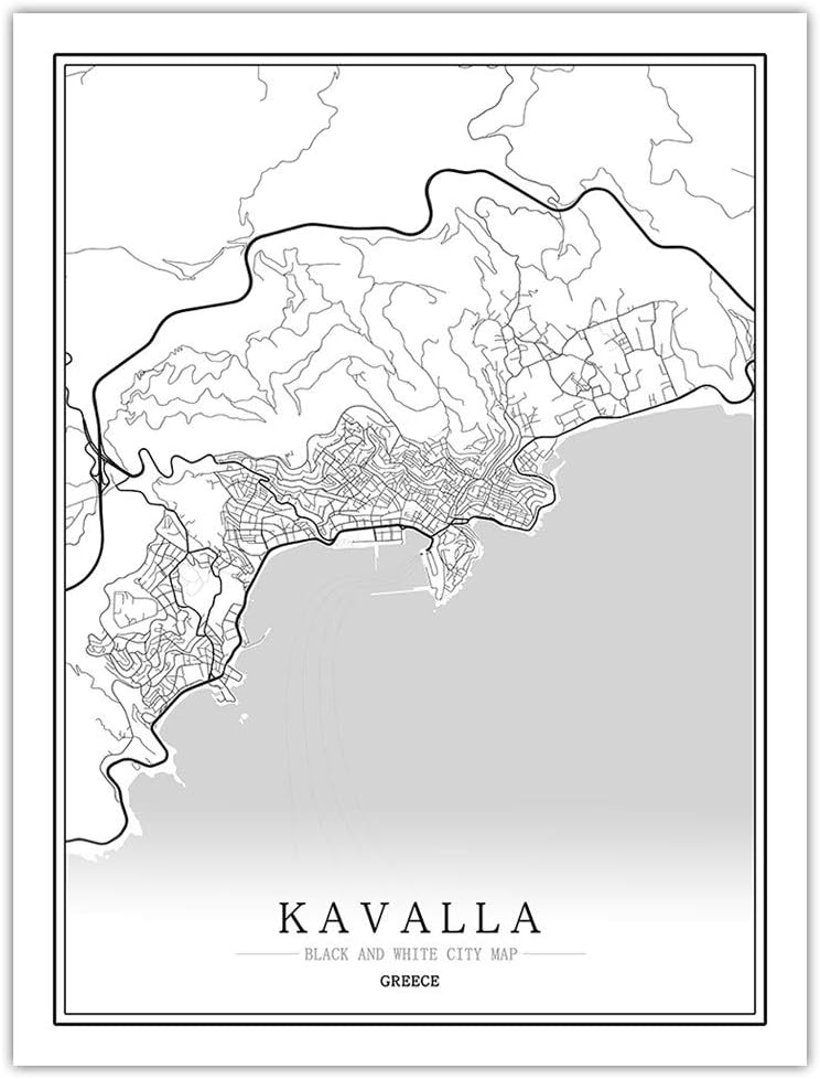 SKYROPNG Prints Canvas,Greece Kavalla City Map Simple Art Black …