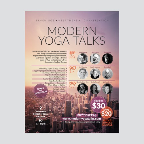 Create a poster design for modern yoga talks speakers event …