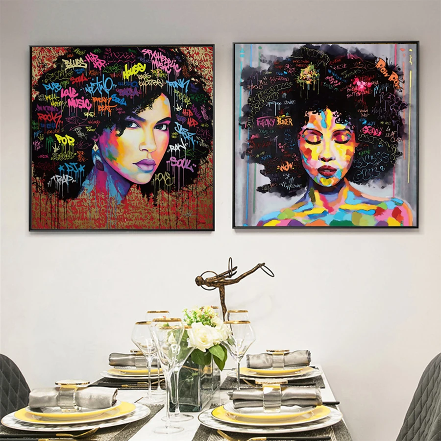 Modern Pop Art Kanvas Lukisan Peledak Afro Gaya Rambut Wanita …