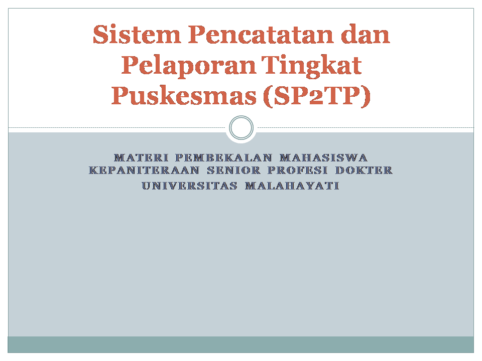 SISTEM PENCATATAN DAN PELAPORAN PUSKESMAS (SP3) - ppt download