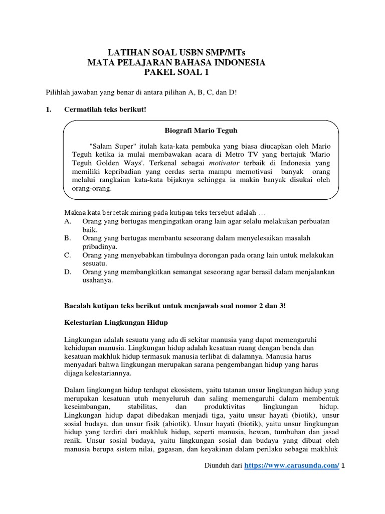 Contoh Soal Un Bahasa Indonesia Dan Pembahasan Smp - Guru Ilmu Sosial