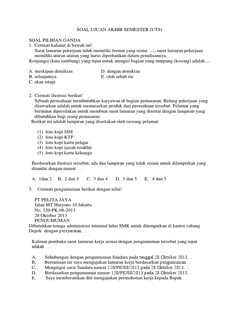 Soal Pilihan Ganda Surat Lamaran Pekerjaan Dan Jawabannya - Contoh Seputar Surat