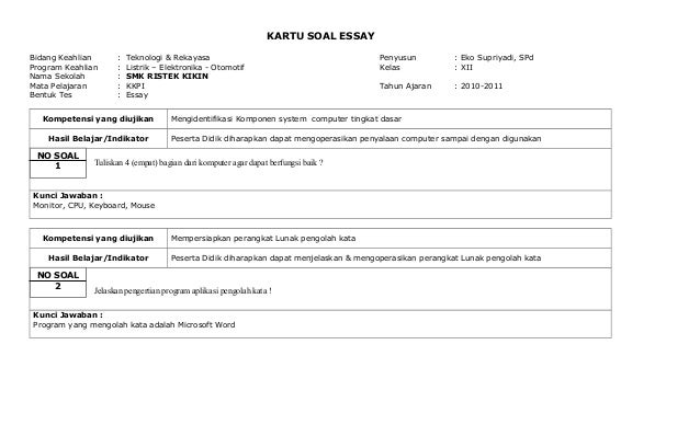 Soal dan Jawaban Essay Ulangan Tengah Semester Administrasi Sistem …