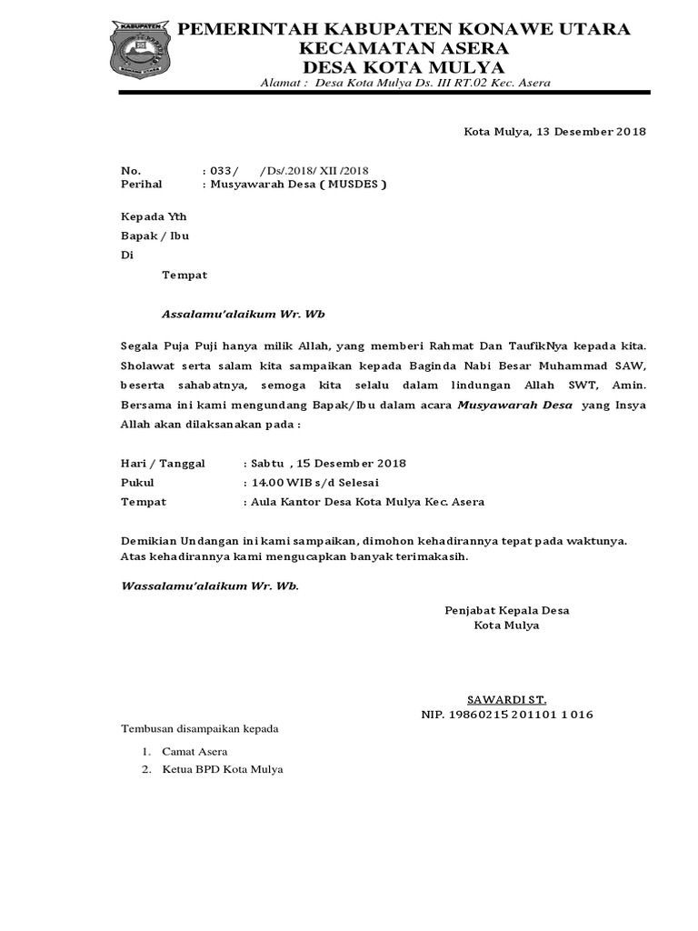 Contoh Surat Undangan Rapat Kepala Desa - Sample Surat Undangan
