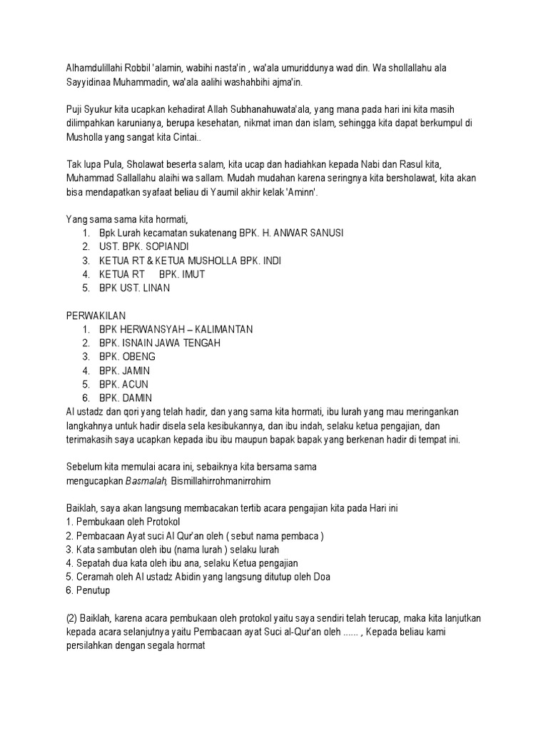 DOC) Teks Pembawa Acara Pengajian yang baik dan Benar | Vivy …