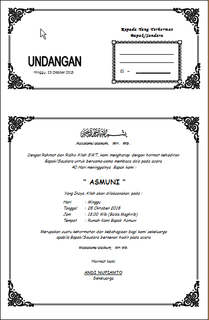 DOC) Contoh Undangan Tahlilan 40 Hari Meninggalnya | Haekal Iqbal - Academia.edu
