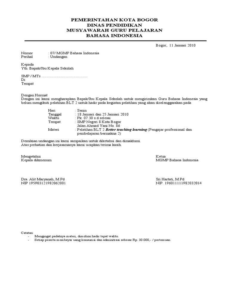 Undangan mgmp b Indonesia – MGMP (MUSYAWARAH GURU MATA PELAJARAN) MADRASAH TSANAWIYAH KAB. MOJOKERTO