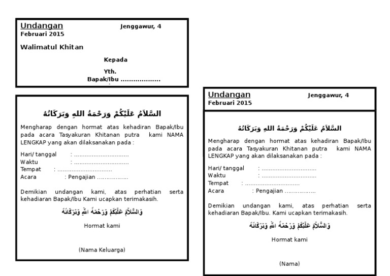 DOC) Contoh undangan khitanan | Jaks Joks - Academia.edu