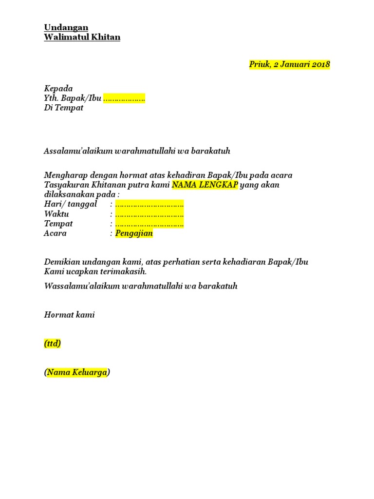 Contoh Surat Undangan Walimatul Khitan | Belajar Office