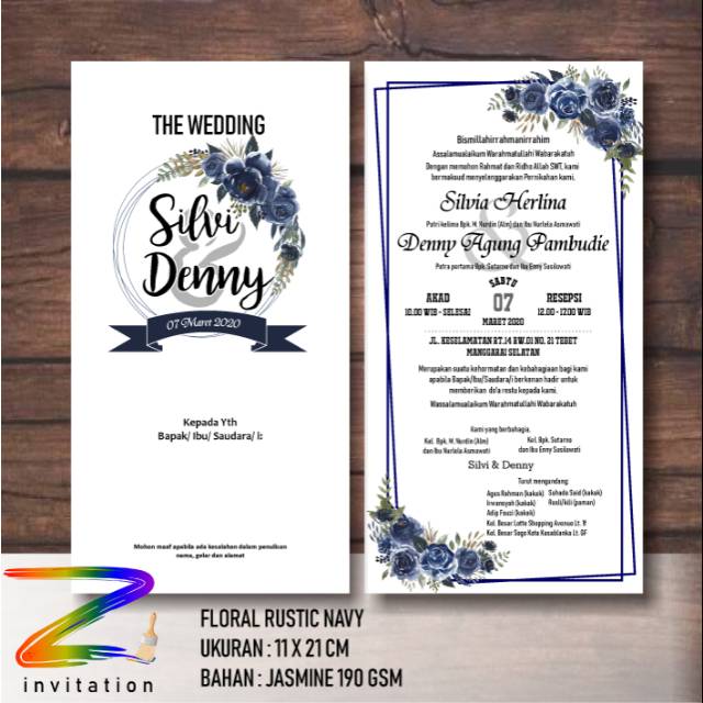 Undangan selembar bolak balik floral rustic navy jasmine | Shopee Indonesia