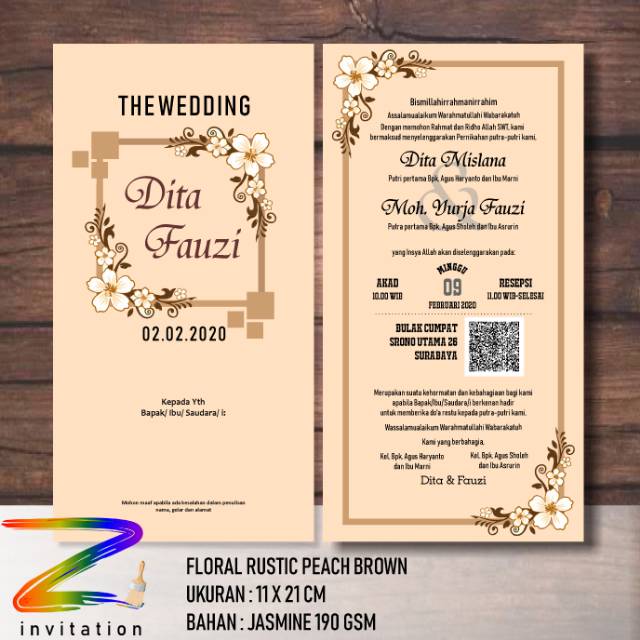 Undangan selembar bolak balik floral peach brown | Shopee Indonesia