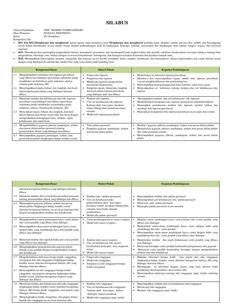 MATERI 9 K13.docx - TEKS KOMPETENSI DASAR DAN INDIKATOR SEMESTER SATU TEKS TEKS LAPORAN PERCOBAAN 3.1 4.1 3.2 4.2 TEKS PIDATO PERSUASIF 3.3 4.3 3.4 4.4 | Course Hero
